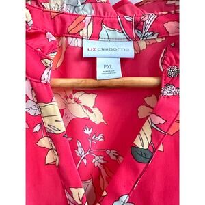 Liz Claiborne Blouse Petite XL Red Teaberry Hawai Floral Ruffle Sleeve V Neck