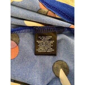 Liz Claiborne Blouse Size Large Top Blue Pattern 3/4 Sleeves Tie Neck Stretch