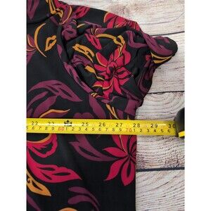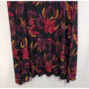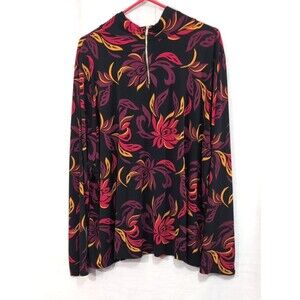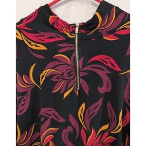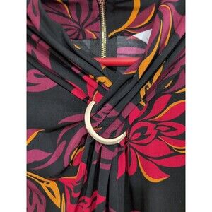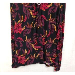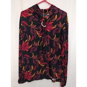 The Liz Claiborne Blouse in size 3X is a stylish and versatile top for women, suitable for various occasions such as travel, parties, casual wear, work, and business meetings. This black floral blouse features a v-neckline with a keyhole ring accent, long sleeves, and a zip closure. Made from liquid knit fabric, it offers stretch and is machine washable for easy care. The scarf ring detail adds a touch of elegance, making it a perfect choice for special occasions or a professional look. Perfect for all seasons, this blouse combines classic style with a hint of artistry.