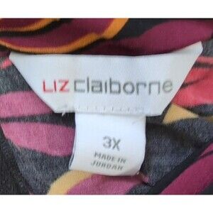 Liz Claiborne Blouse Womens 3X Black Floral Scroll Keyhole Ring Neck Long Sleeve