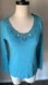This elegant blouse features a vibrant blue hue with intricate embellishments along the scoop neckline. Crafted from a soft, stretchy knit fabric, it offers a fitted silhouette and full-length sleeves, making it a stylish choice for any occasion.