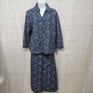 Liz Claiborne Blue Floral Boho Blouse Midi Skirt Chambray Set 12