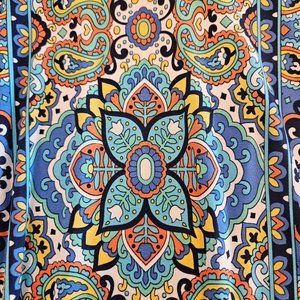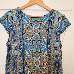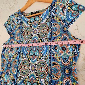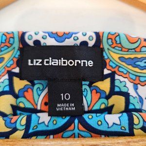 Liz Claiborne Blue, Orange Medallion Print Knit Shift Dress, Size 10