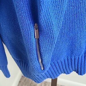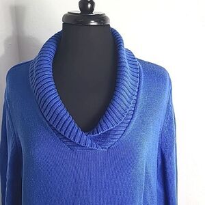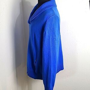 Liz Claiborne Blue Sweater, Shawl Collar, 2 Zipper Pockets on Front, Size XL