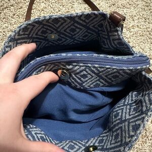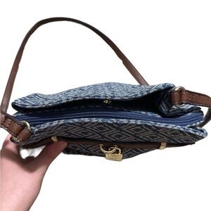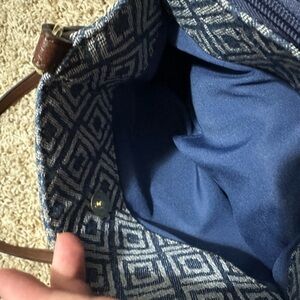 Liz Claiborne Blue, White, and Brown Crossbody with Fabric and Leather