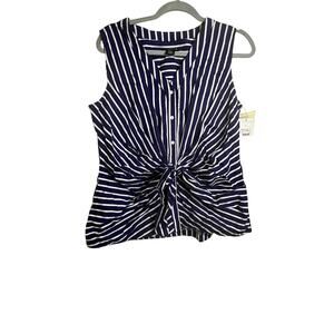 Liz Claiborne Blue and White Striped Sleeveless Top Size Large NWT