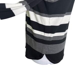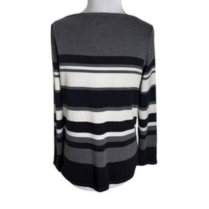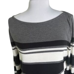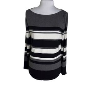Liz Claiborne Boat Neck Shirttail Hem Horizontal Stripe Black/Gray Top Size L