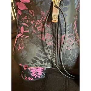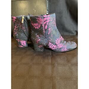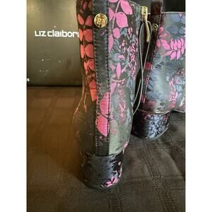 The Liz Claiborne Booties in size 8.5W are stylish ankle boots designed for women. Featuring a black and pink floral brocade pattern, these memory foam booties have a comfortable zip closure for easy wear. Made of textile material, these booties are perfect for adding a touch of flair to any outfit. The memory foam feature provides added comfort and support for all-day wear, making these booties a practical and fashionable choice for women on the go.