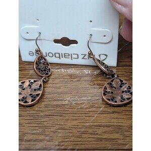 Liz Claiborne Bronze Tone Dangle Earrings Green Cabochons and Filigree Detail