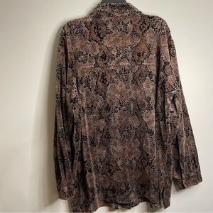 Elevate your style with this chic brown snake print shirt. Perfect for adding a bold touch to any outfit. Very soft material. EUC.