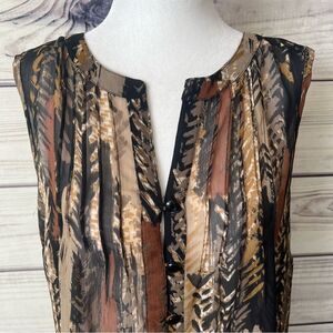 Liz Claiborne Brown & Black Patterned Sheer Button Down Sleeveless Blouse