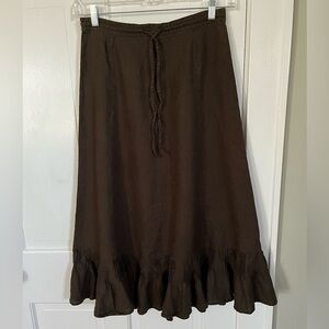 Liz Claiborne Brown Maxi Skirt 100% Linen Pintucked Ruffle Size 6