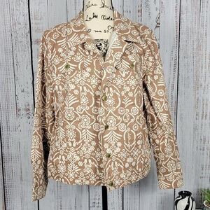 Liz Claiborne Brown & Tan Size 16 Boho Chic Patterned Shacket Jacket Blazer