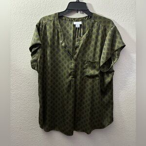 Liz Claiborne Burnt Olive Geo Blouse XXL