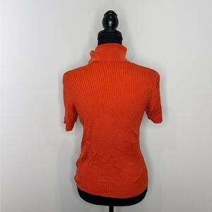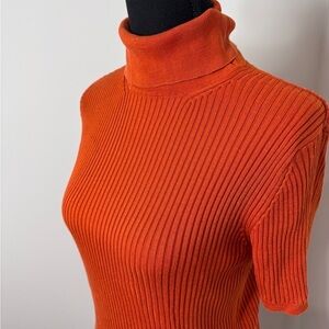Liz Claiborne Burnt Orange 100% Silk Short Sleeve Turtleneck Ribbed Top (M)