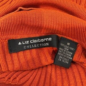Liz Claiborne Burnt Orange 100% Silk Short Sleeve Turtleneck Ribbed Top