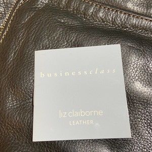 Liz Claiborne Business Class Brown Leather Brief Case Tote Bag Soft leather exterior. Interior has a tan suede like material. Three interior sections. Middle zips closed. Two outside sections have magnetic closure. Interior padded for laptop protection. Lots of pockets for storage and organization. Exterior zip pocket mesh storage pocket, key fob, pen slots and two pockets. Measures about 18' wide at bottom, 13" wide at top, 11.5" tall, 3" deep. Excellent condition. One tiny pen mark on exterior pocket interior. No long strap provided but one could be used with this case. I pack carefully and ship quickly. Have any questions? Please ask. Thank you for looking!
