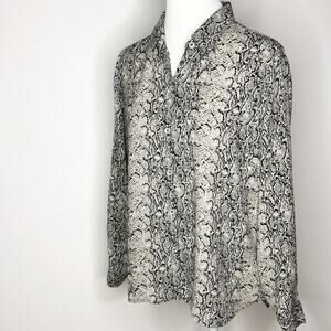 Liz Claiborne Snake Print Blouse Large Button Front Career