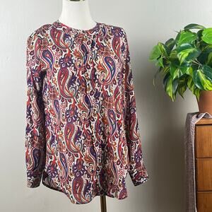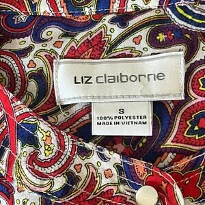 Liz Claiborne Button Front Red & Blue Paisley Long Sleeve Blouse Size Small