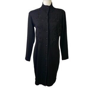 Liz Claiborne Button Up Sweater Dress/Coat Long Sleeve Bead Embellishments Wool
