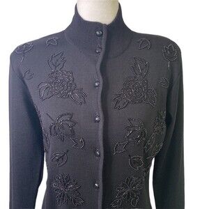 Vintage- RARE Timeless and elegant Liz Claiborne button up sweater dress/coat or cardigan featuring beaded embellishments in a wool blend.