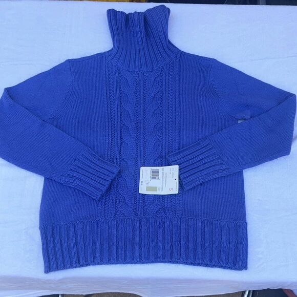 Liz Claiborne Cable Knit Silk Angora Rabbit Hair Turtleneck Sweater Size Small