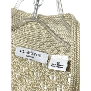 Liz Claiborne Cardigan Open Front Crochet Plus 1X Acrylic Boho Cottagecore NWT