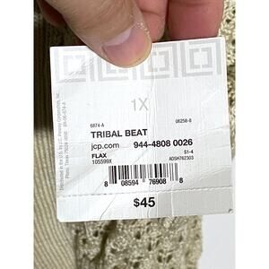 Liz Claiborne Tribal Beat Open Front Crochet Cardigan Womens Plus 1X Acrylic Boho Cottagecore Coastal Grandma NWT