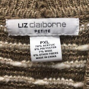 Liz Claiborne Cardigan Sweater Women Petite XLP Textured Beige Metallic Open