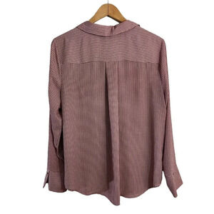 Liz Claiborne Career Blouse Size Large Red Pink Houndstooth Long Sleeves Top