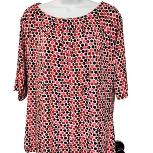 Liz Claiborne Career Ladies XL Multicolor Polka Dot Short Sleeve Blouse