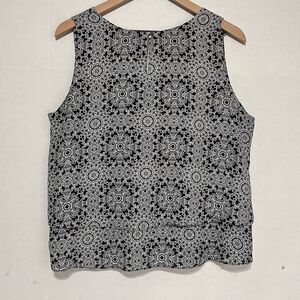 Women’s Liz Claiborne Career Petite Black And White Geometric Design Sleeveless Tiered