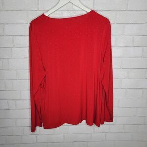Liz Claiborne Career Red Silver Long Sleeve V Neck Blouse