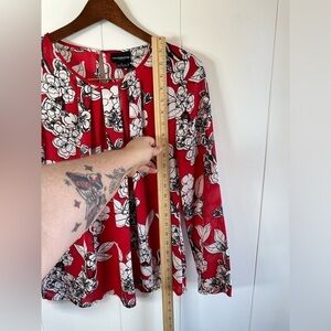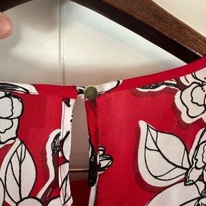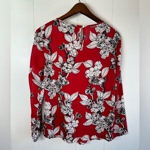 Liz Claiborne Career Red and White Floral Sheer Blouse Size Small