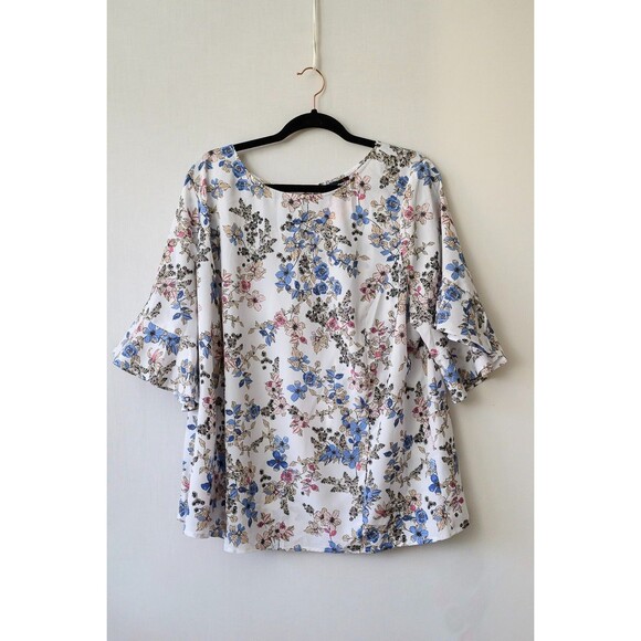 The Liz Claiborne Career Woman 1X floral blouse is a stylish and versatile option for the office or casual occasion. Made from polyester, this blouse features a round neckline, 3/4 flutter sleeves, and a multicolor floral pattern. The regular fit and plus size make it comfortable and flattering for a wide range of body types. Perfect for a career woman looking for a basic yet chic blouse from a reputable brand like Liz Claiborne.