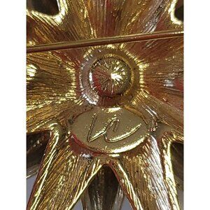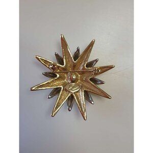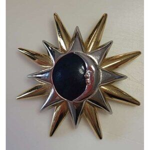 Liz Claiborne Celestial Sun Moon Brooch Sunburst Gold Silver Tone