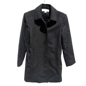 Liz Claiborne Charcoal Black Pea Coat 100% Lambswool Size 4 Petite