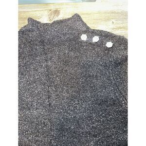 Add a touch of 90s charm to your wardrobe with this Liz Claiborne Charcoal Heather Long Sleeve Sweater. The tight-knit polyester and spandex material makes it lightweight and perfect for travel, casual outings, or business meetings. The sweater features a turtleneck neckline, raglan sleeves, and silver flower accents on a solid charcoal heather gray background.