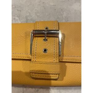 Liz Claiborne Checkbook Wallet Golden Yellow Pebble Grain Big Buckle Organizer