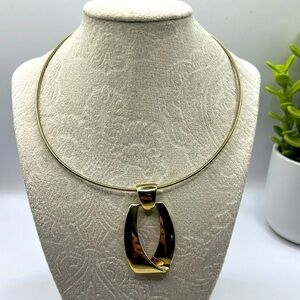 Liz Claiborne Choker Necklace Gold Tone with Modern Pendant Big Bold Statement