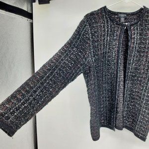 Liz Claiborne Clasp Front Black Shimmer Metallic Women's Sweater L Petite