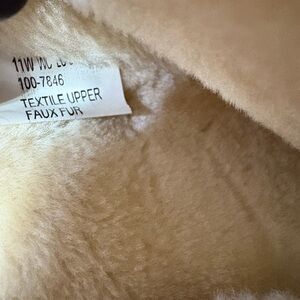 Material: Faux fur lined with a 100% textile upper outer surface and 100% thermoplastic-rubber sole.
