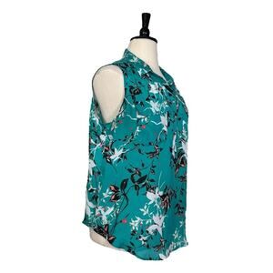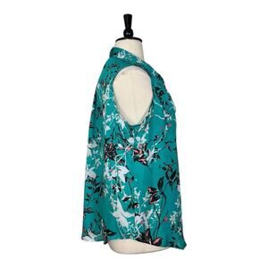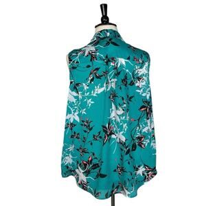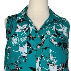 Liz Claiborne Collared Sleeveless Top Teal Multi Floral Women’s Size 2X