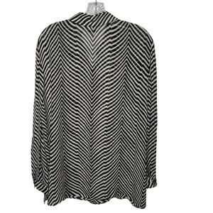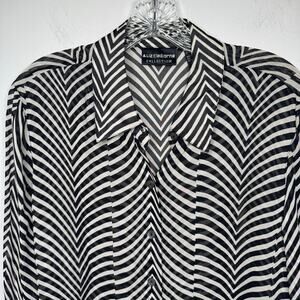 Liz Claiborne Collection Black White Chevron Striped Button Front Blouse Size 10 Y2K Sheer Rayon