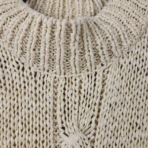 - Open-knit construction with textured cable details