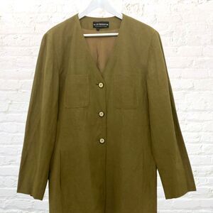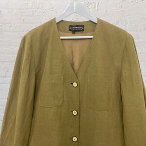 Liz Claiborne Collection Jacket 14 Vintage Silk Linen Blazer Olive Green 90s