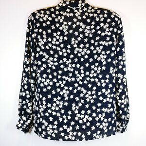 Liz Claiborne Collection Sz 6 Blouse navy blue white clover pattern lucky