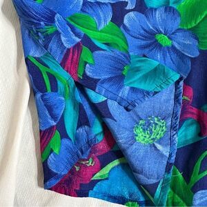 Vintage Liz Claiborne Collection Vibrant Floral Rayon Short sleeve Button-Up Blouse size 12. Bright floral design in turquoise, green and cerise with Short sleeves, shoulder pads and side splits. Perfect for casual summer outings, office casual, business casual, tropical, floral, Hawaii, Hawaiian shirt,