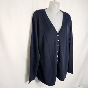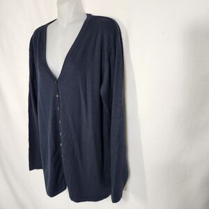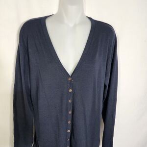 Liz Claiborne Collection Woman's Cardigan Sweater Large Silk Blend Blue V Neck