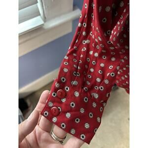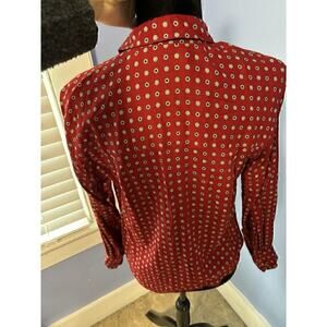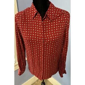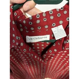 Liz Claiborne Collection blouse size10 P maroon dotted shoulder pad rayon